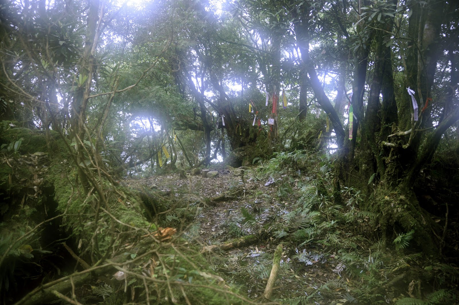 漸漸的蕨類開始減少,取而代之的是箭竹叢,不過不會密到造成穿越的困難,反而常常要抓著它們當成攀爬用的繩索。